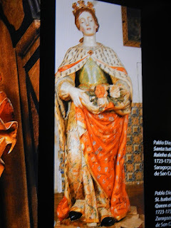 Eis algumas imagens, da 1ª exposição, a invocadora ou evocadora da rainha das rosas e do Espírito Santo, peregrina de Santiago e do Bem Comum, padroeira de Coimbra, onde ainda hoje o seu túmulo e mosteiros irradiam bênçãos espirituais aos que invocam esta Mestra da Tradição Espiritual Portuguesa, que tão bem soube unir a acção e a contemplação.